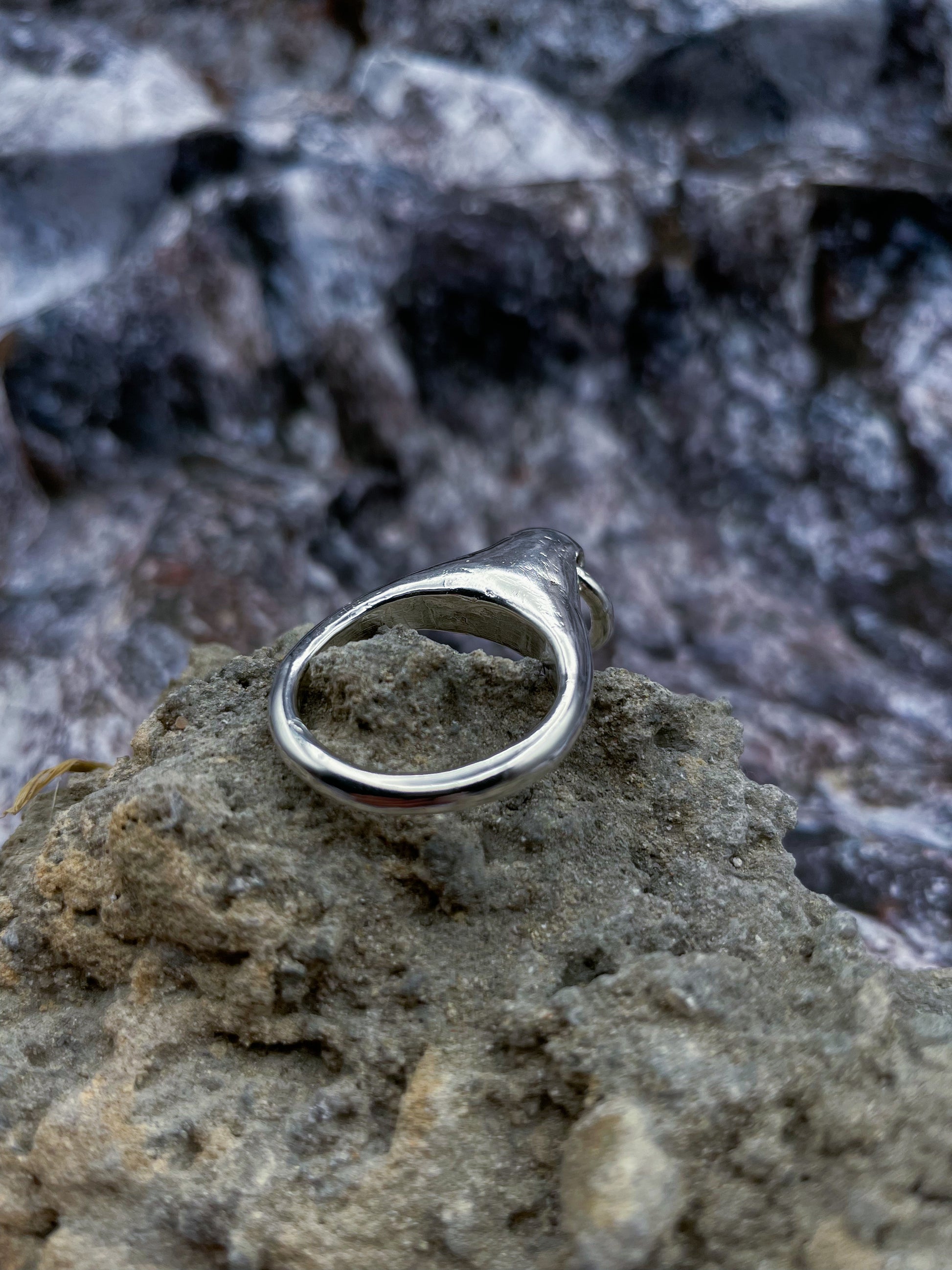 Amarre pour doigt, anneau d’argent dans anneau d’argent.