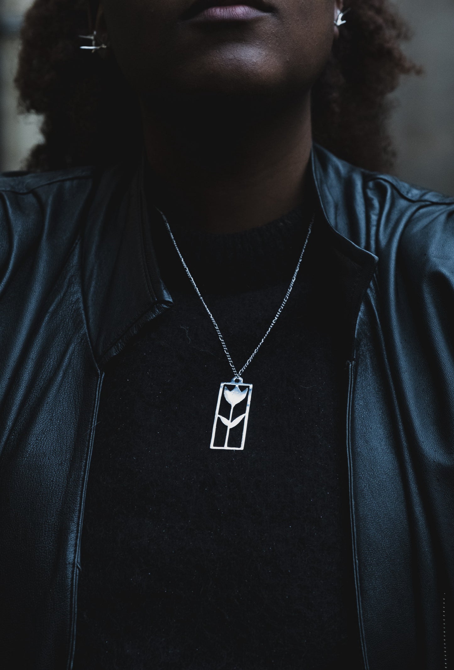 This thin and naive silver flower can be hanged around your neck or your ears.
