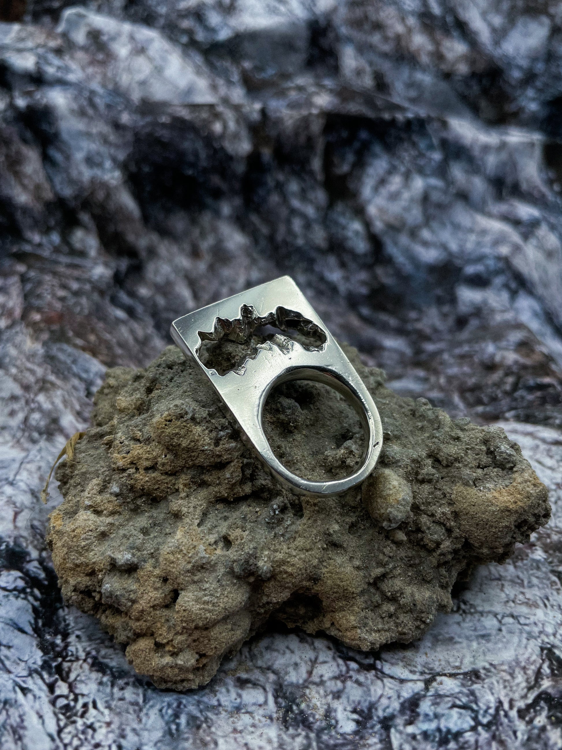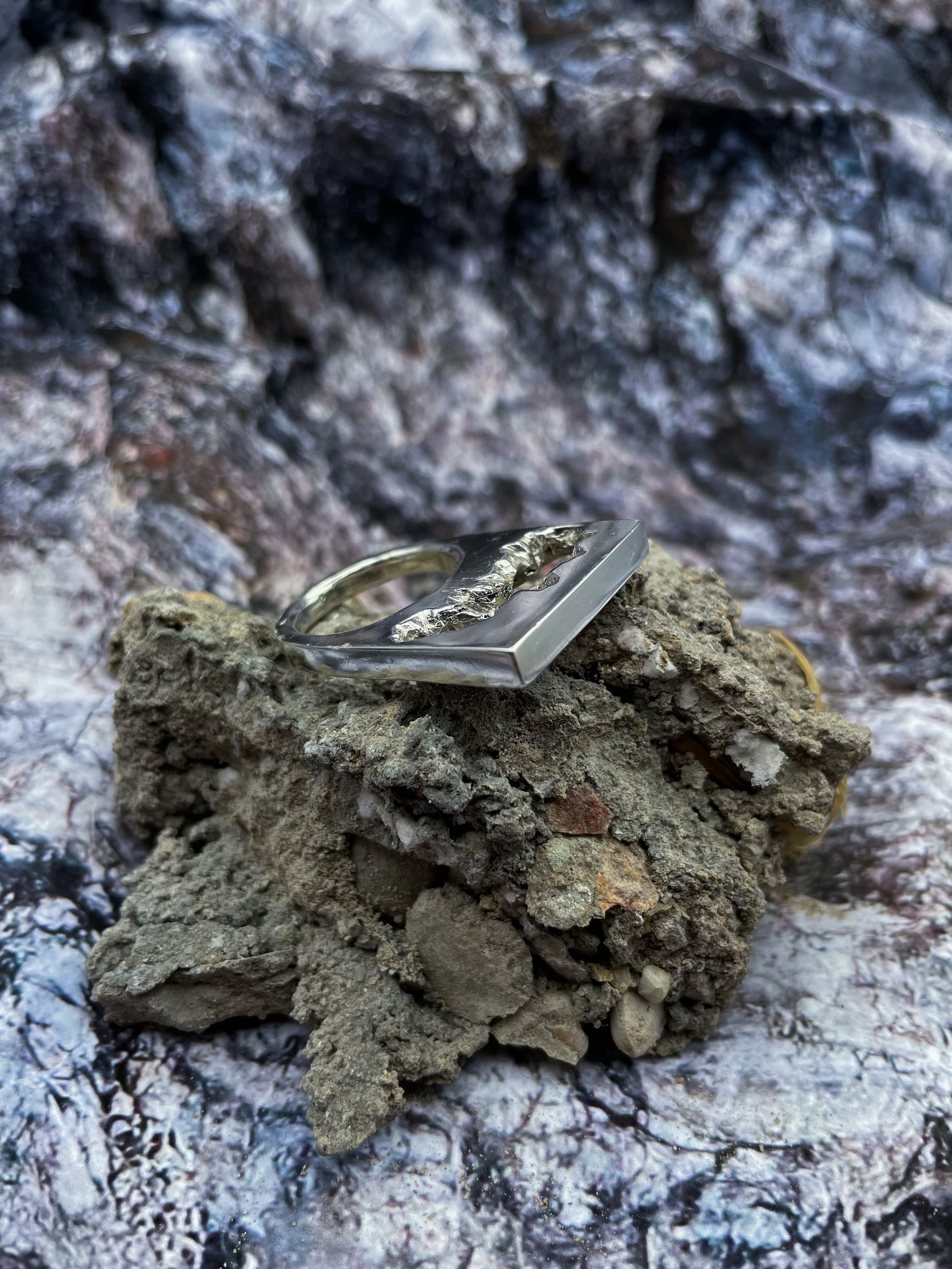 This hand sculpted silver ring mixes softness and brutalism, creating a massive yet elegant shape around your finger.