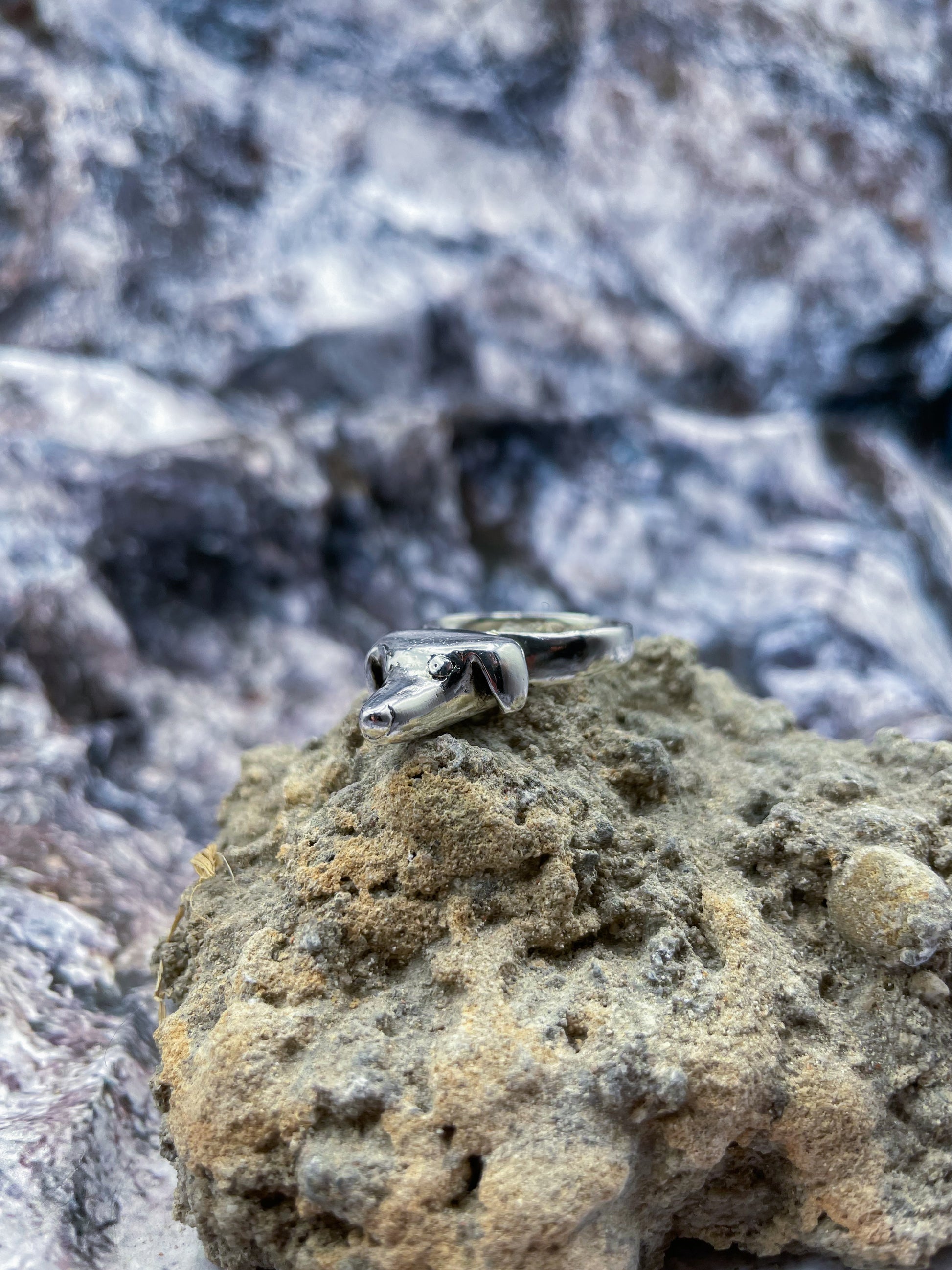 This sweet and naive teckel is the first jewel I made. Hand sculpted on a pure silver ring, will loyally shine around your finger.